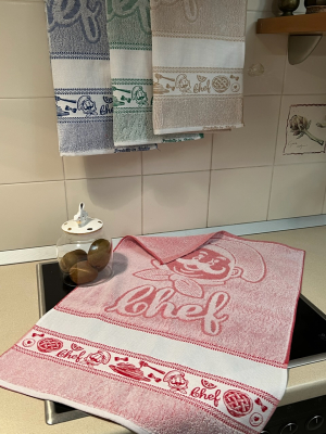 Размер 50х70 см Нежные и мягкие, очень приятные на ощупь махровые кухонные полотенца. Изготовлены из натурального хлопка, отлично впитывают влагу, быстро сохнут. Прекрасно смотрятся на любой кухне. Есть петелька для подвешивания. Цвета сохраняют яркость после многочисленных стирок. Прослужат долго, не теряя своего первоначального вида.