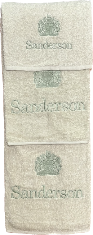 Набор состоит из 3 полотенец с вышитым логотипом известного английского бренда Sanderson. Вышивка выполнена тон в тон.